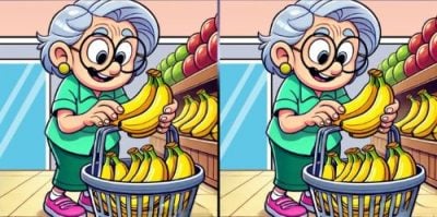 Kitoje užduotyje turėsite rasti tris skirtumus iliustracijose, kuriose pavaizduota, kaip močiutė prekybos centre renkasi bananus, rašo jagranjosh.